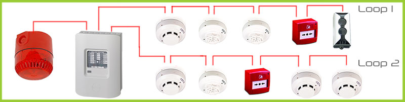 Conventional fire detection systems typically work on a 2, 4, 8 or 16 loop (or zones) configuration. Devices are connected to the panel using fire-resistant cable and if a fire or smoke is detected, the fire panel will go into alarm mode. The alarm will alert you as to what area (zone) the fire is coming from but this could be as vague as “4 th floor"